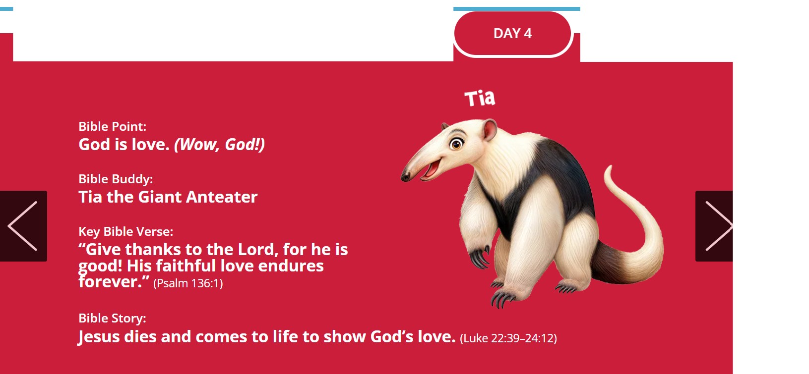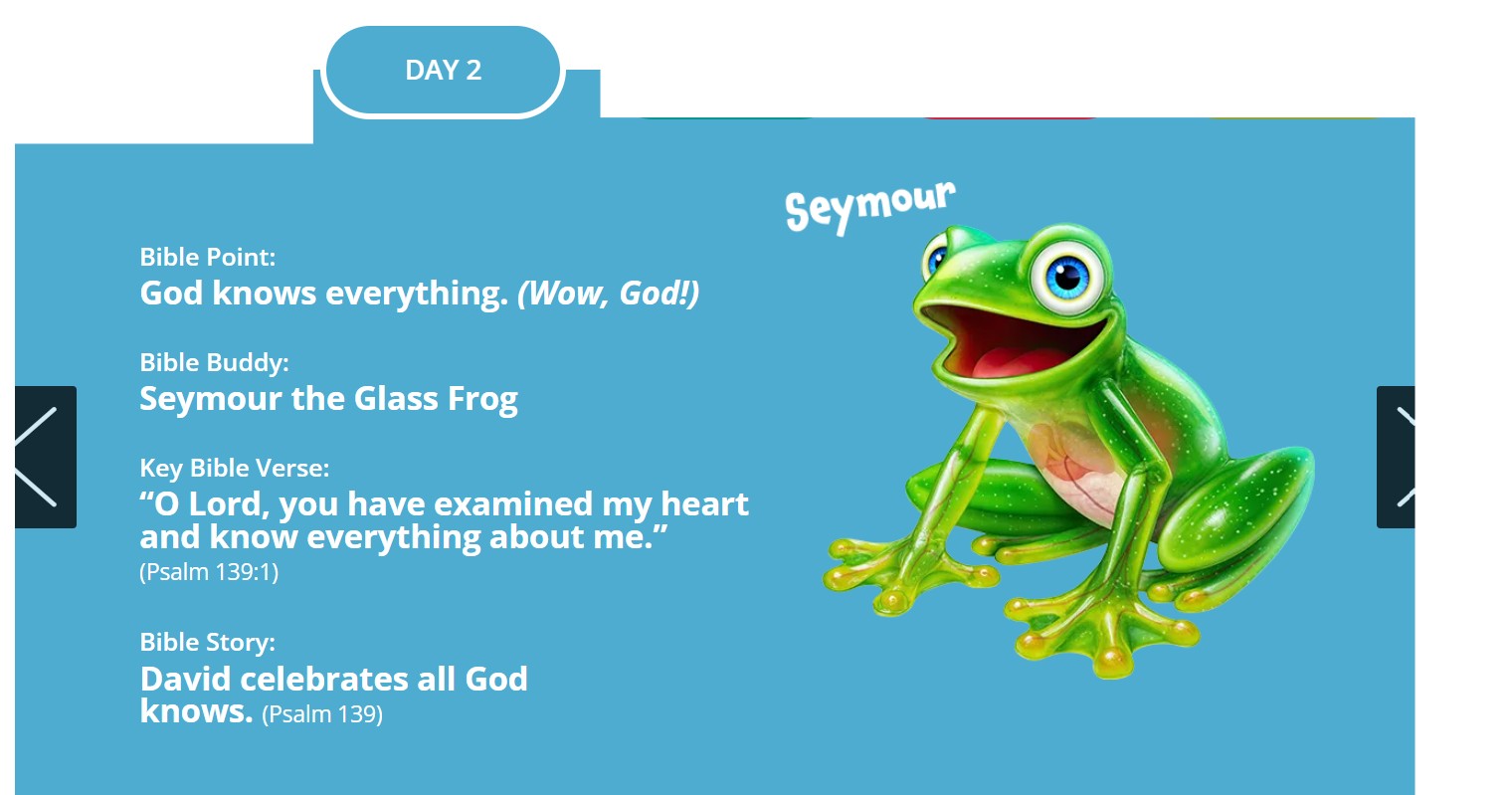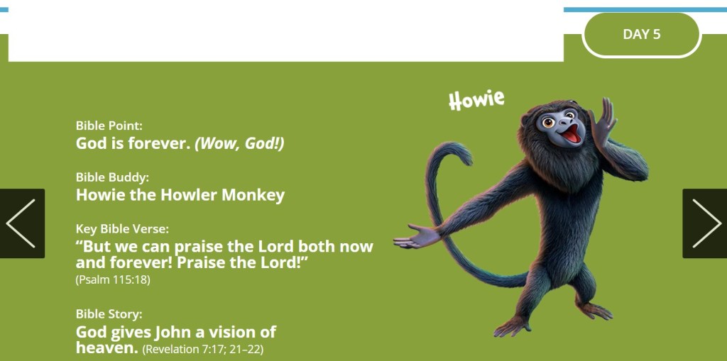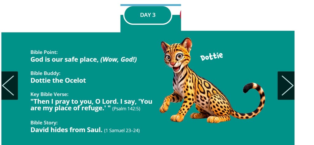 The five-day curriculum highlights God as Creator, All-Knowing, Safe Place, Love, and Forever.