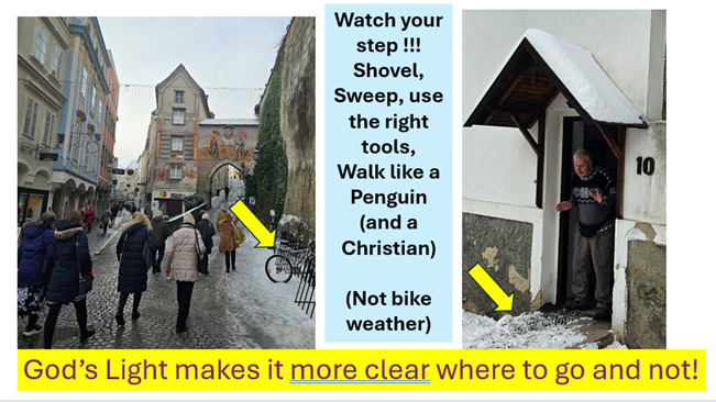 And that is our devotion about the AMAZING the things that God has made for us here on earth – and that we should PRAISE – not just things – but for direction. He has us here on earth for such a short time and we are to see down times as cold snaps and not forever – we are to see beauty even amidst pain – we are to see hope in the distance of time – all while being in the closeness of the Lord’s presence. And we are to respectfully fear His Mighty Ways. (and as we followed the tracks in the snow – may we follow the Path He sets in front of us.)