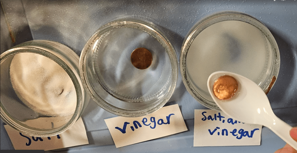 SO in the beauty and yet harshness of winter – and in life – may we continue to praise that we have direction and hope – and love – and know that we have moments to pause and let the snow cover simplify our lives in giving us rest too – not just the hibernating groundhogs or sleeping trees – may we ourselves simply take time to praise and then raise ourselves to the challenges of life. Remember that we will be renewed like the upcoming spring too – that is when we will soar some more: So that your youth is renewed like the eagle’s. (and trust me that the young had a much easier time falling on ice and snow and jumping right back up – we pray to remember that the Lord gives mercy in flexibility – and we long for those times again for us – we will have them in forever – forever youth…) And like the camper’s science experiment of removing oxidation tarnish from pennies, in salt and vinegar, may we also shine again – IN PRAISE. May we experience and enjoy the vast diversity – the bright colors and the sweetness of life.