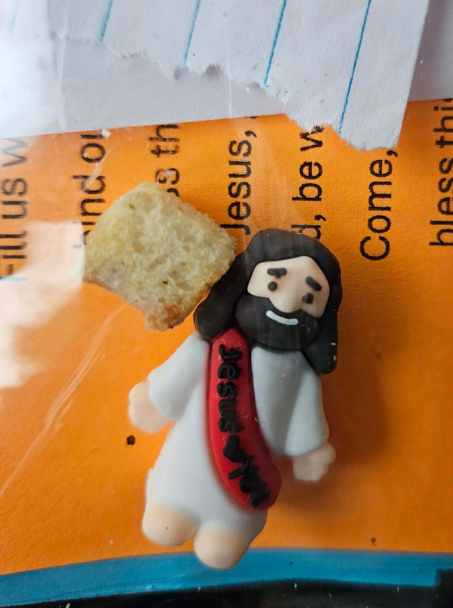 This – these little figurines of Jesus are a modern fad but a sweet one. And this weekend at the event, a lot of Little Jesus’s were shared. And A LOT of A LOT of JESUS was gifted. and I trust that Jesus stands in the gap for me.