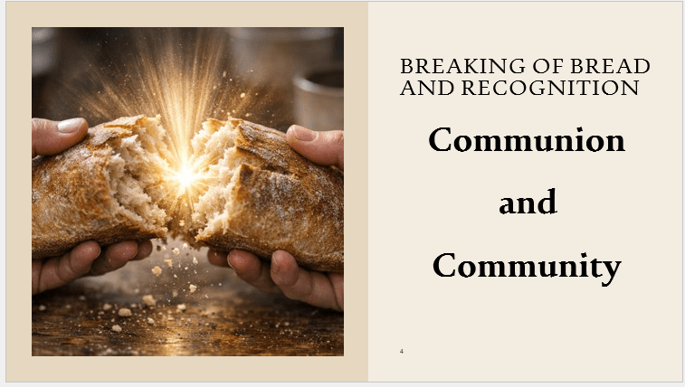 I appreciate that Jesus was together in community with the 2 of them as they walked – in community – and then broke bread – it was a communion moment – but also a community moment – where there were likely more there to eat as well – and that is where it all got put together…