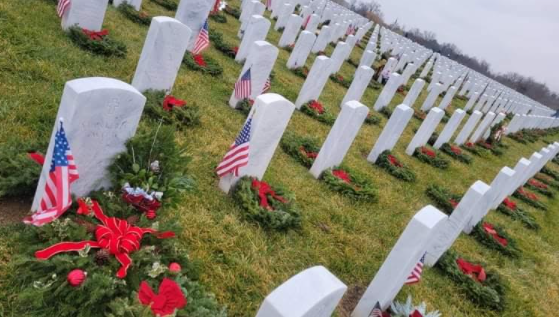 I went to a National Cemetery for Wreaths across America. Here, 18,000 Wreaths were laid on God’s field of stone markers and healing blessings were laid upon thousands of souls walking, taking photos, reminiscing. The Cemetery was filled with children, boy scouts. ROTC guard, soldiers, congressmen, people. There were soft pretzels and people laughing. There were immense tears and comfort-filled hugging. And the smell of the wreaths was as good as any Christmas tree farm. All were honored.