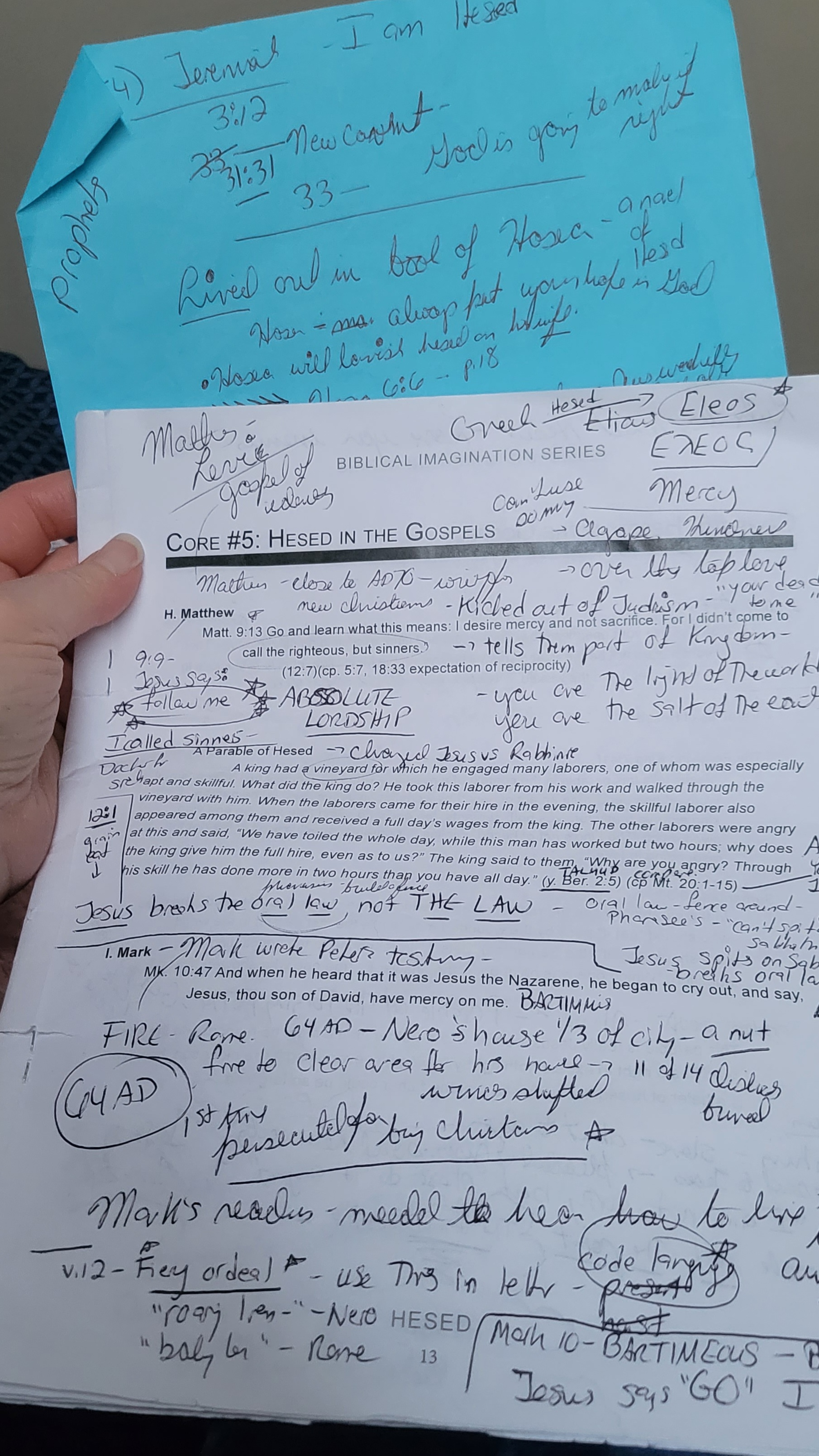 This note paper (photo attached) is from that day, and it has the EXACT scripture that was read in my church yesterday. WOW! It’s a parable told by Jesus of a king paying day-laborers a wage whether they were short or long in the field, and his generosity allowed him to pay them all the same, regardless of time in the field. It’s a parable to demonstrate God’s forgiveness, His Hesed, IT’S GOD’S GENEROSITY, IT’S GOD’S MERCY HESED GRACE LOVING KINDNESS… God brings us into Heaven based on His ability. Jesus came to call the sinners…