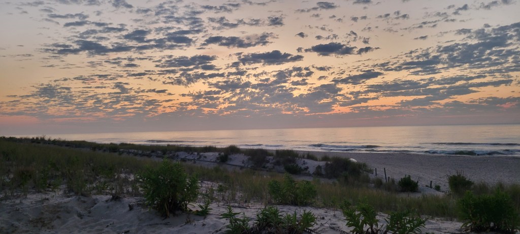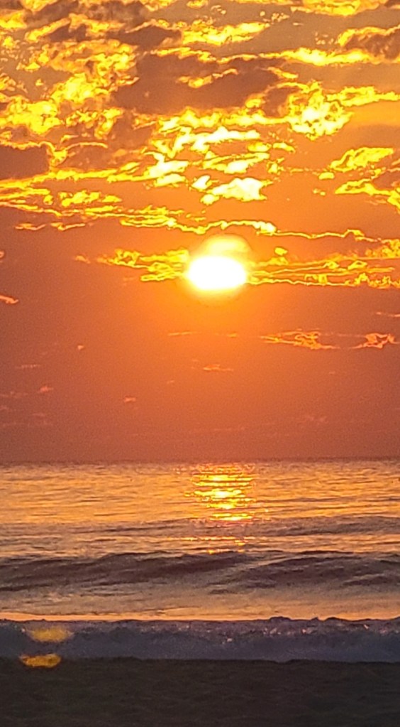 That’s how I navigated this Sunday, uniquely Unique. Recognition of a Sunday to rest in the Lord’s Presence with His people. My day was unique, starting with sunrise at the seashore. Actually this IS unique that I even got to get to the shore for a whole weekend, for last bits of summer, thanks to wonderful friends with a house on the island. Relaxed on Saturday, moved through more blessings on Sunday. Like an elephant ear of yummy pastry shared at the bay (it’s a very narrow island). Like collecting seashells and watching sand crabs and surfers. Relaxing, how novel for me… Ah, the earthly distractions and delights, can we even imagine that the relaxation and good things of Heaven will be even better? With endless times? Mind-blowing.