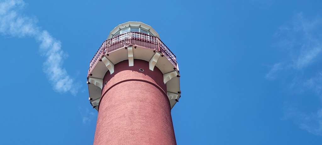 Apparently it was like the Jeopardy lightning round, education time, from my bench-sitting older gentleman Italian-heritage former salesman of lighting fixtures for malls up-and-down the East Coast “random” gregarious sharer of info on this Sunday. Having needed shade and rest after climbing the TALL Lighthouse, this co-resting gentleman educated me on everything from the ABCs of east coast lighthouses to the widest channel of water in the area for the boats, to the 1950’s purchase of his family’s beach place. He couldn’t climb anymore but he knew how to entertain and to share, to look to connect with many people, and I appreciated it as I rested my feet from 201+16 steps of the 172 foot tall spiral staircase. His feet kept him grounded this time, while waiting for others in his party. Then when the same joke was reissued to a newcomer newly resting near our bench, I picked up and stepped away ready to keep moving. I’m sure we might catch up in Heaven someday. This man made a “Daymark” in my memory, knowledge of where the nice conversation was going, a mark of note in enriching my day and me being ears to listen for his, a “Daymark” meaning his colorful nature was distinct and recognizable, I enjoyed listening and learning.