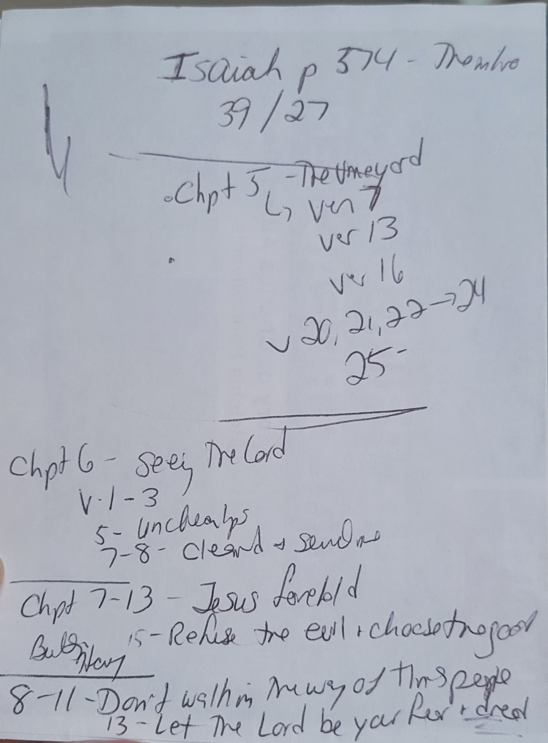 “HERE I AM LORD, SEND ME.” Is what Isaiah said, for he became a prophet for helping God motivate people into correction and HOPE. He had to warn them but mention the blessed hope of Jesus Savior coming.
