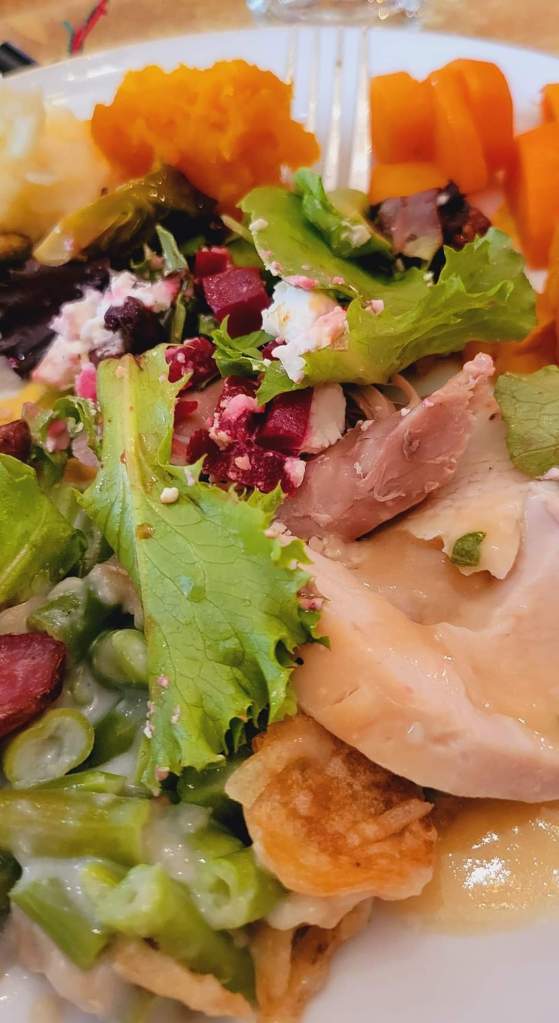 Back to the fork, I knew I could get it out, stealthily wipe the handle, and start the actual meal, but 1st I just looked at my full plate. And I looked at the family I was blessed to be in – a time to just relax and be real. Satisfied in advance. Yes, nice to savor that thought of: “I made it to dinner” – plus: “I’ve been gifted this time, these opportunities, this life pause to take it all in.” – Yes, and then really DID dig in, fork and all. I made it to dinner and now I actually got to eat. I had a plate set for me – as I slid in 10 minutes later than my hope but still in time. They held the meal for me. I felt special that way.
