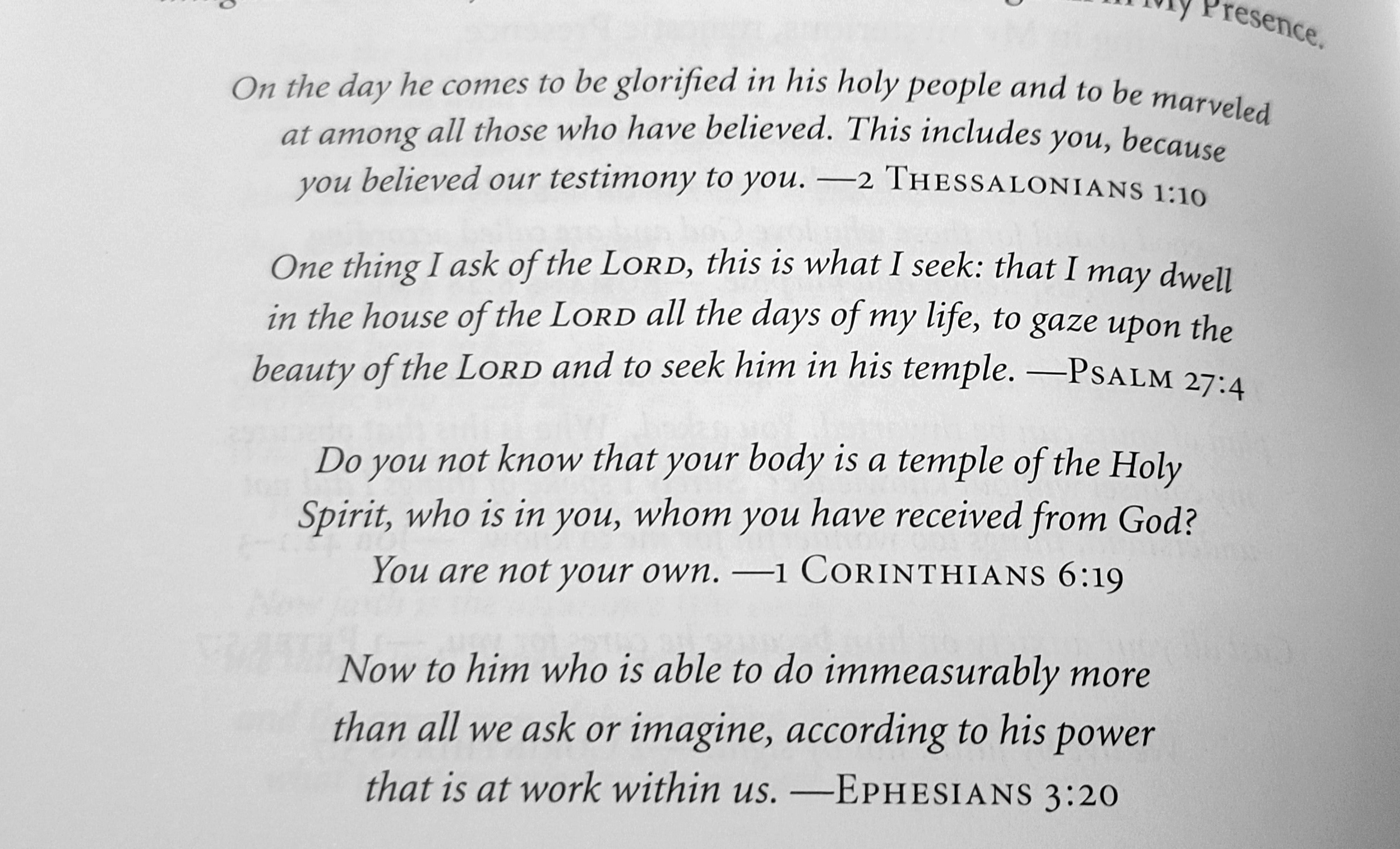 For we know that if the earthly tent we live in is destroyed, we have a building from God, an eternal house in heaven, not built by human hands. Meanwhile we groan, longing to be clothed instead with our heavenly dwelling, because when we are clothed, we will not be found naked. For while we are in this tent, we groan and are burdened, because we do not wish to be unclothed but to be clothed instead with our heavenly dwelling, so that what is mortal may be swallowed up by life. Now the one who has fashioned us for this very purpose is God, who has given us the Spirit as a deposit, guaranteeing what is to come.