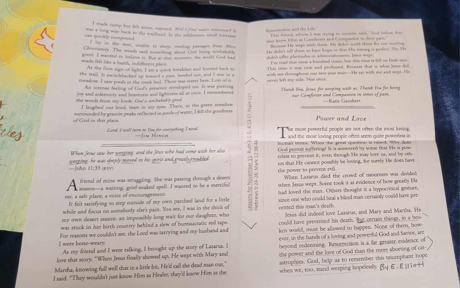 It’s not unusual to give books away, or find writing in used ones, but when one buys a used copy, like I did last month, it WAS unusual for a greeting card and paper insert to come with it. This is a Jesus Calling devotional book gift re-gifted back to a thrift store which made its way into my hands thru used book selling on ebay, and along with it this card and paper insert, which has God’s Word re-stated for a new audience, me and you. God’s Word is a LASTING WORD.