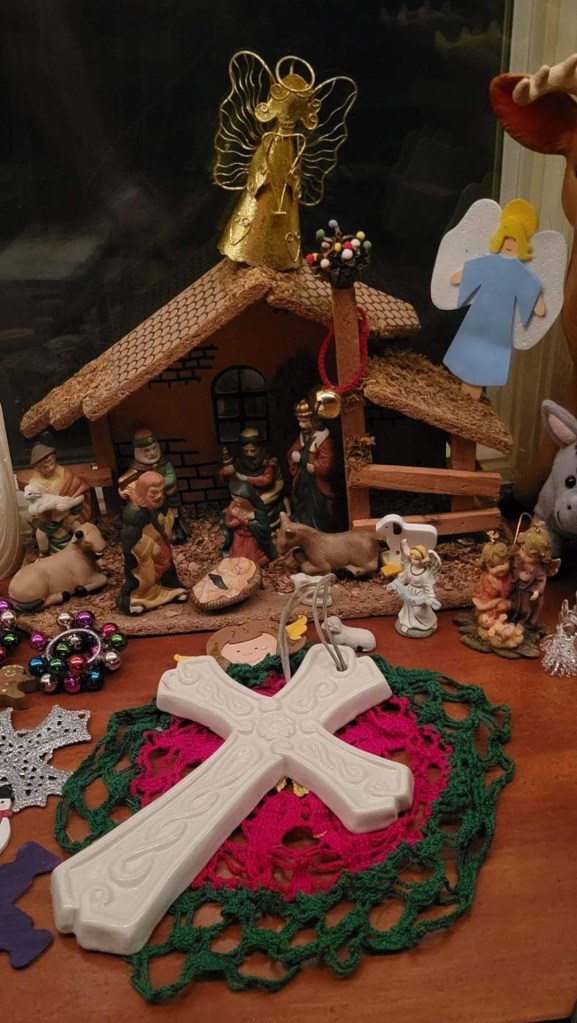I wasn’t ready, for Christmas decorating or colors. And I didn’t/don’t have to be, it still early. And yet, after a recent personal tirade about Thanksgiving colors in my life needing more time, I saw my own collapse of my curmudgeonness, it happened just tonight. And I’m not fully in, but Christmas happened, I crumbled to both the secular AND the Spiritual, yes to the cookies then to the colorful lights, then to the conifer tree, and then to the carrying down of decorations – but the lifting aspect of Christmas is the receiving of the gift of Christmas itself. Alleluia. The gift of Christmas Spirit is in itself RECEIVING it.