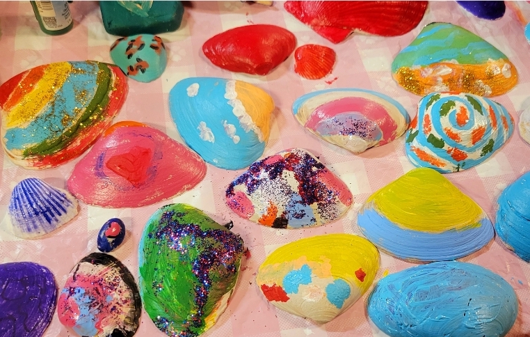(I even ate someone’s abandoned cheeseballs, yum, as I too sat down to paint a seashell with moms and older girls.) People look at me funny when I say I’m going to camp, aren’t I good for helping, but who wouldn’t want to be here?!?!