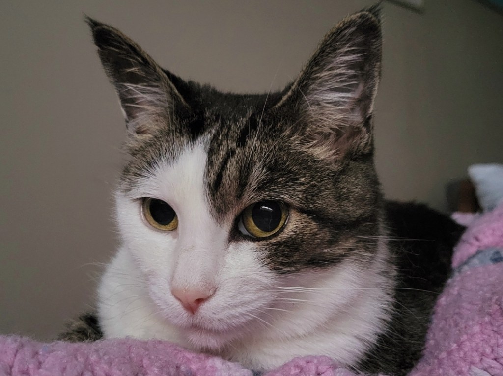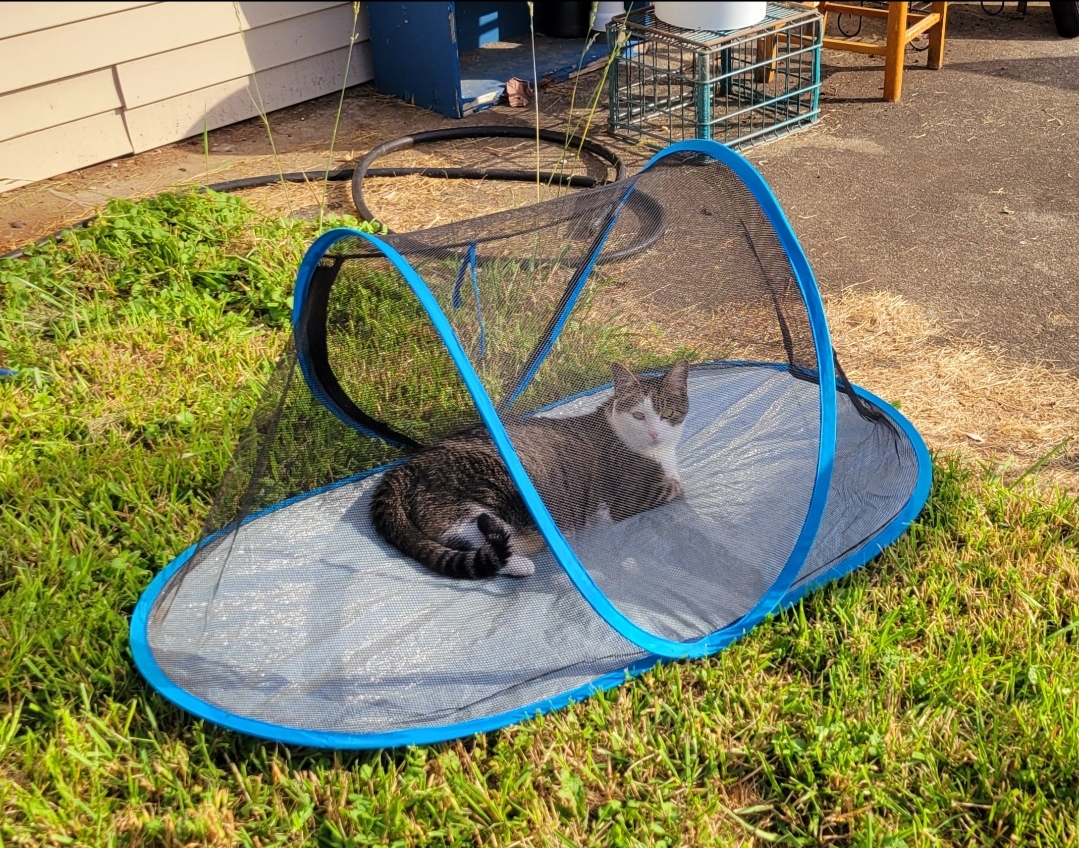 I can imagine she’s thinking about summer time outside, spoiling her, preventing serious cat pouting and spat.
