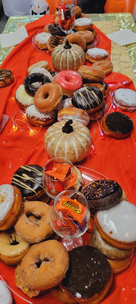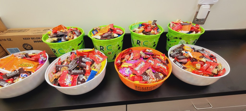 Yes, this was blessedly my encouragement (and paper posting and photo-ing and emailing) role on the Activities Committee this time for encouraging the week, a POSITIVITY week cumulative yesterday in Halloween… We had costumes we had candy. We had jocularity. We did purchase candy by work, but the JOY was FREE.