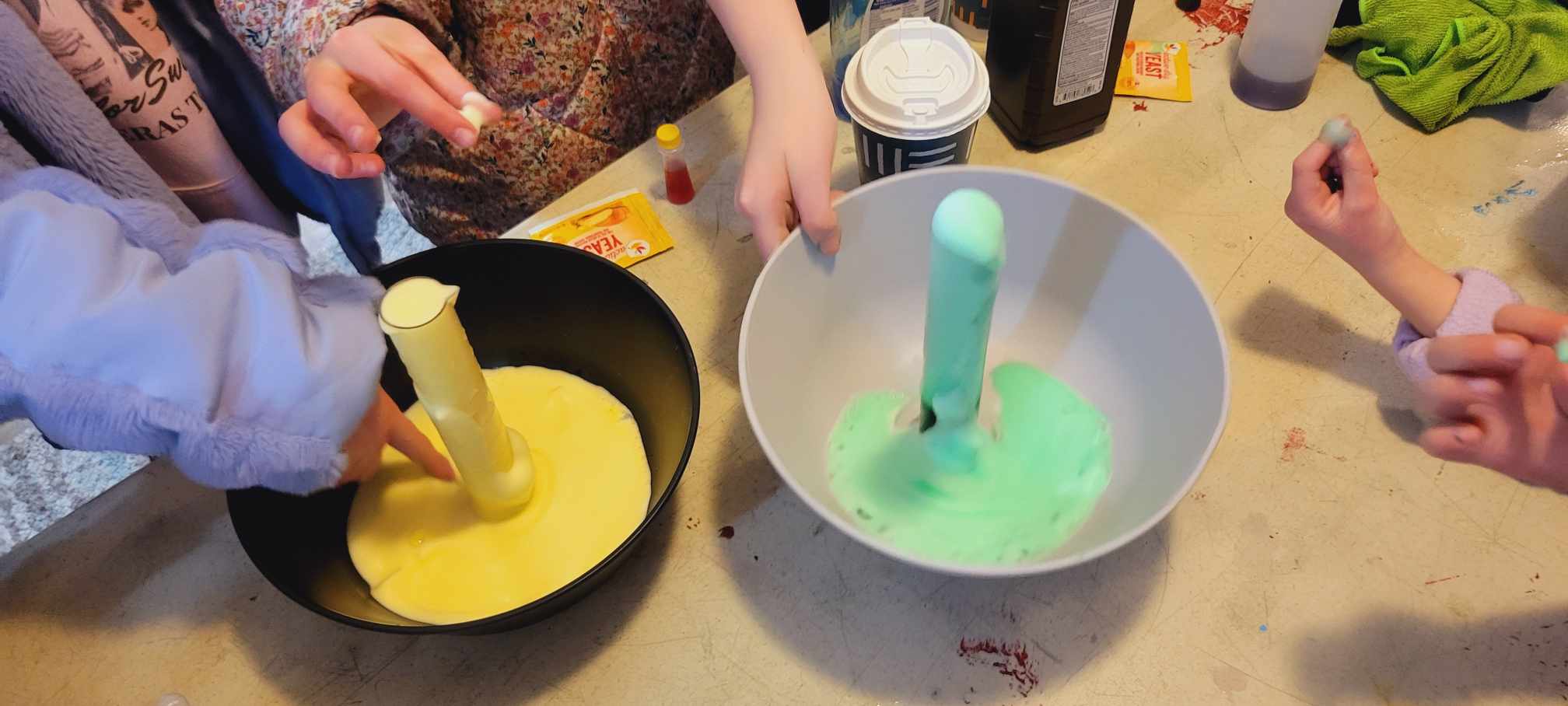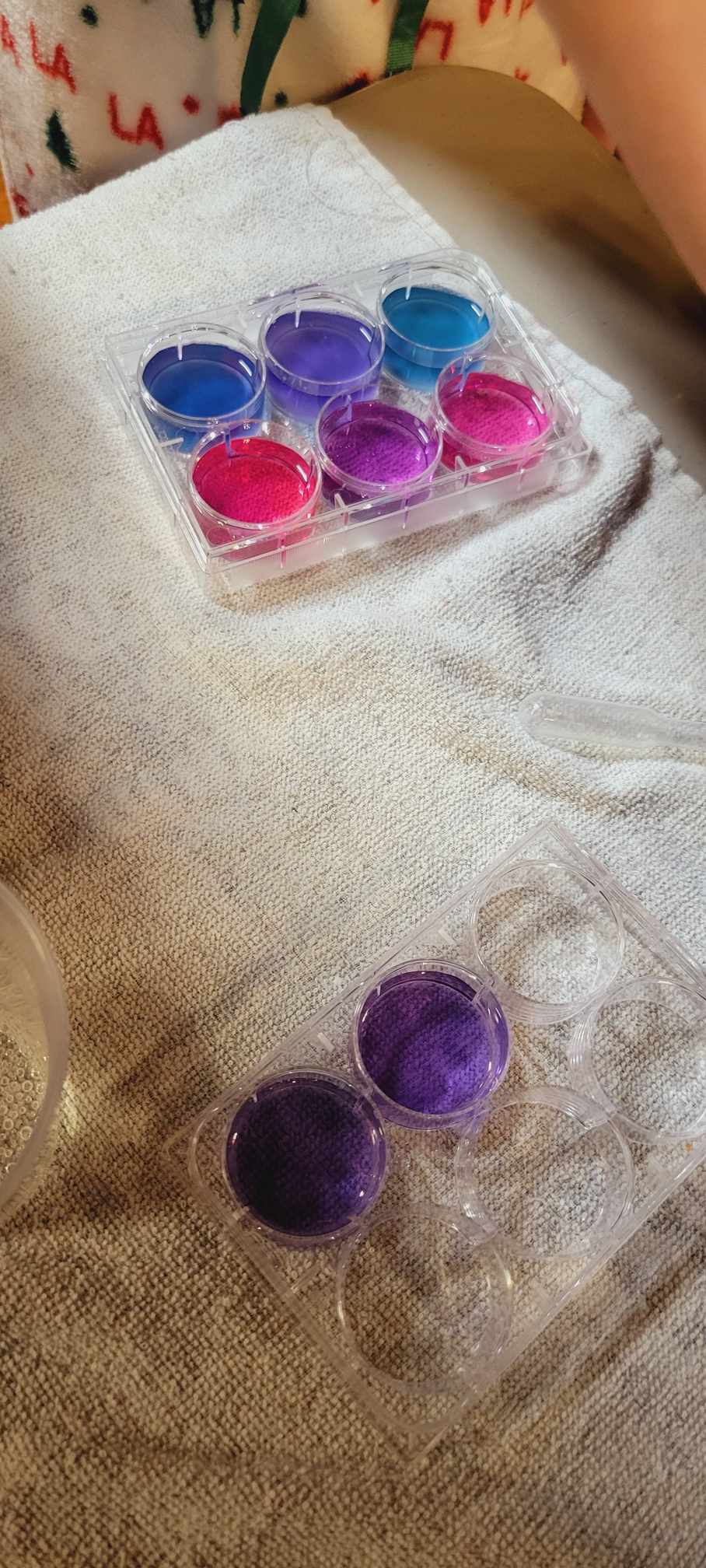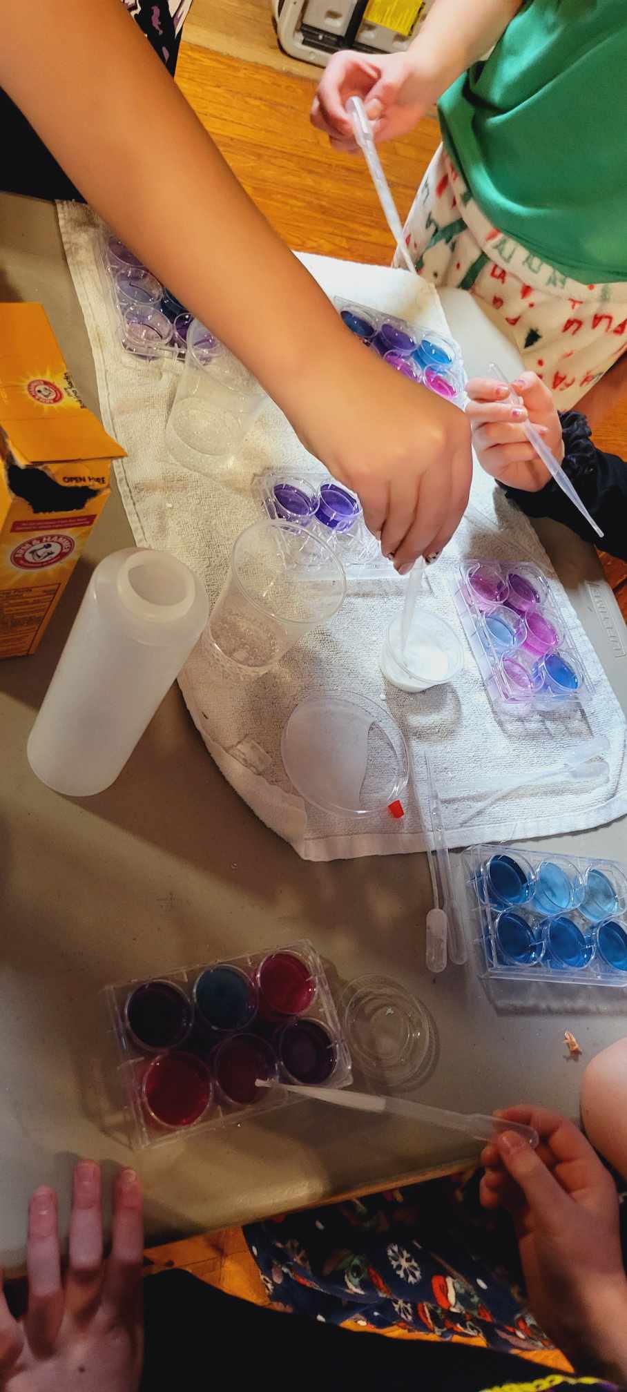 Nature hikes and science experiments and painting and card games and Bananagrams and bracelet making. We took a hike around the lake and later a few of us went to where the littlest Daisy girls were staying. You realize how BIG the little girls are when there are even littler younger ones there – and what a joy for me to see 4 of our girls run two science experiments for the littlest ones at their cabin. We enjoyed isolating strawberry DNA, making slime, making homemade playdough, making pH color changes for the red cabbage juice with vinegar and baking soda. They were really good to go with the slime and the elephant toothpaste experiment too – once it was set up the girls had free reign – this is camp and yes you can trust them with food coloring and controlled messes… it all washes…