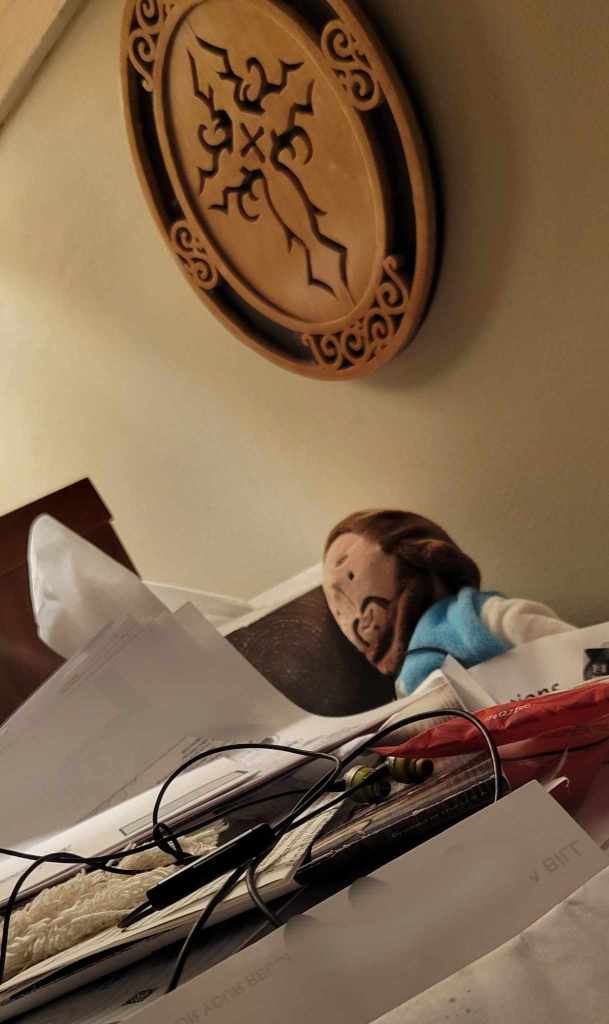 And so today when I found the one of my plushy Jesus dolls toppled over, hanging on a binder by his feet, well that’s just fitting… and on top of it that i’m having issues with my cat protesting, so I HAVE to clean, and add to that, that I know I will be away and busy in all of July, I better clean now….