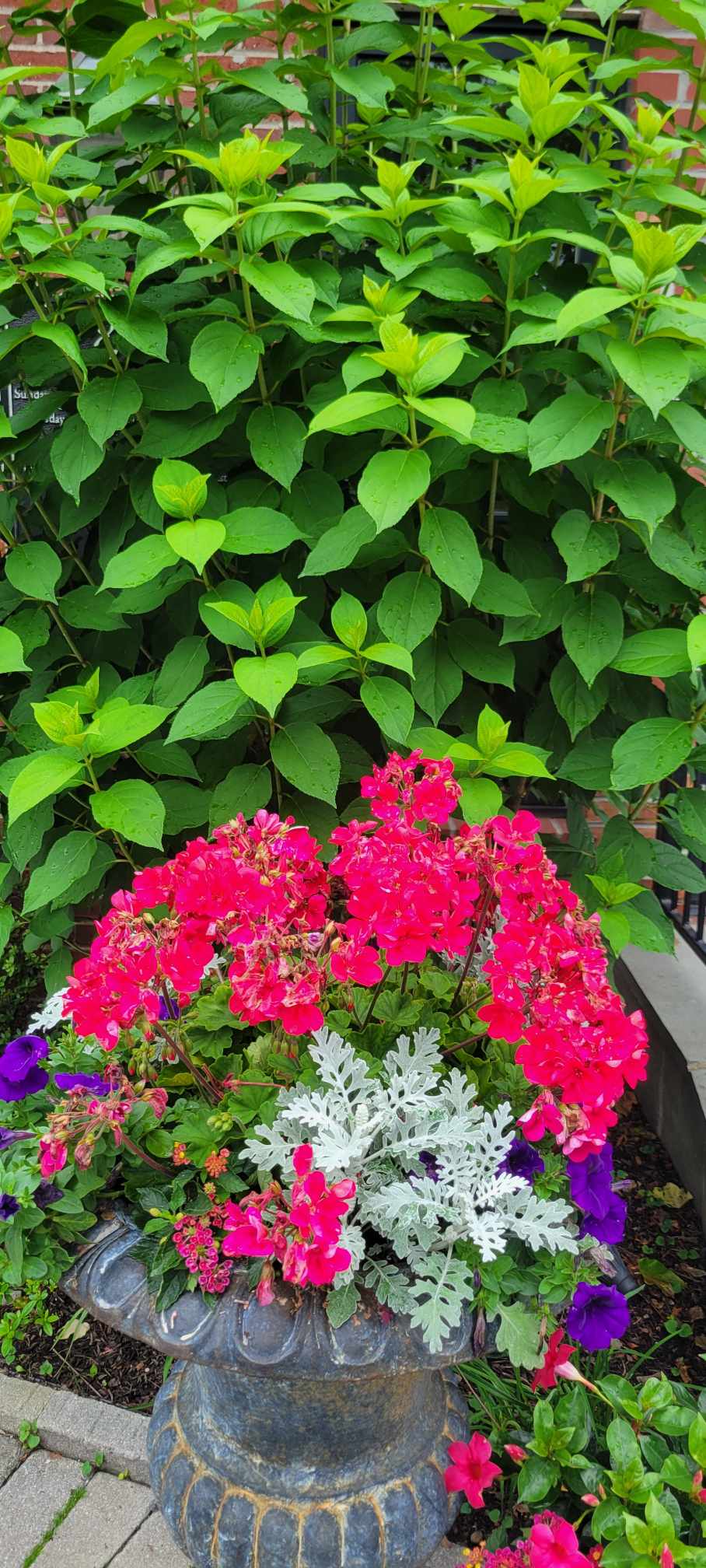 The two youngest had been touching everything all over the patio, stones and trinkets, and intrigued by the pond frogs, and well, using the top of the statue of Mary, her head, to steady themselves while traipsing the balance beam of the garden edging.