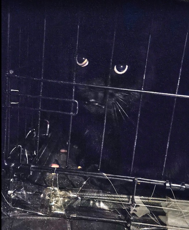 All praise and honor to the Lord, I caught the stray cat at my friend’s house! I really felt it was trust that would catch him not a trap… I even pet him tonight. He wanted to be social and then I scooped him up with my hands, as I did have gloves on, and I put him in the cage and reinforced the cage a lot and got it closed and I used leftover vacation bible school carabiner clips to secure the door and all the edges…