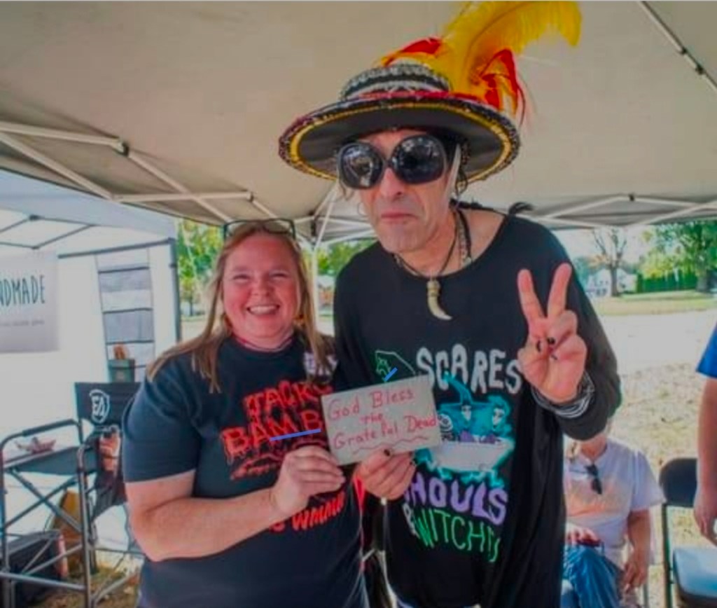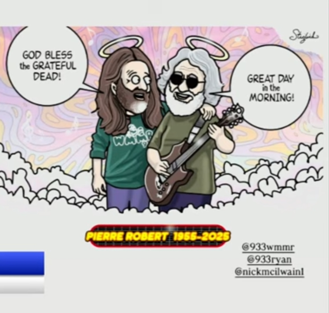 Wow… I am amazed and thankful. I just watched this story on Instagram for the radio station WMMR. And as I was looking at all the October posts, I was BLESSEDLY SHOCKED to see that the stone piece I decorated for legendary DJ Pierre Robert, who legendarily said “God Bless the Grateful Dead” all the time, was in the video! The stone piece was in the studio!!!!