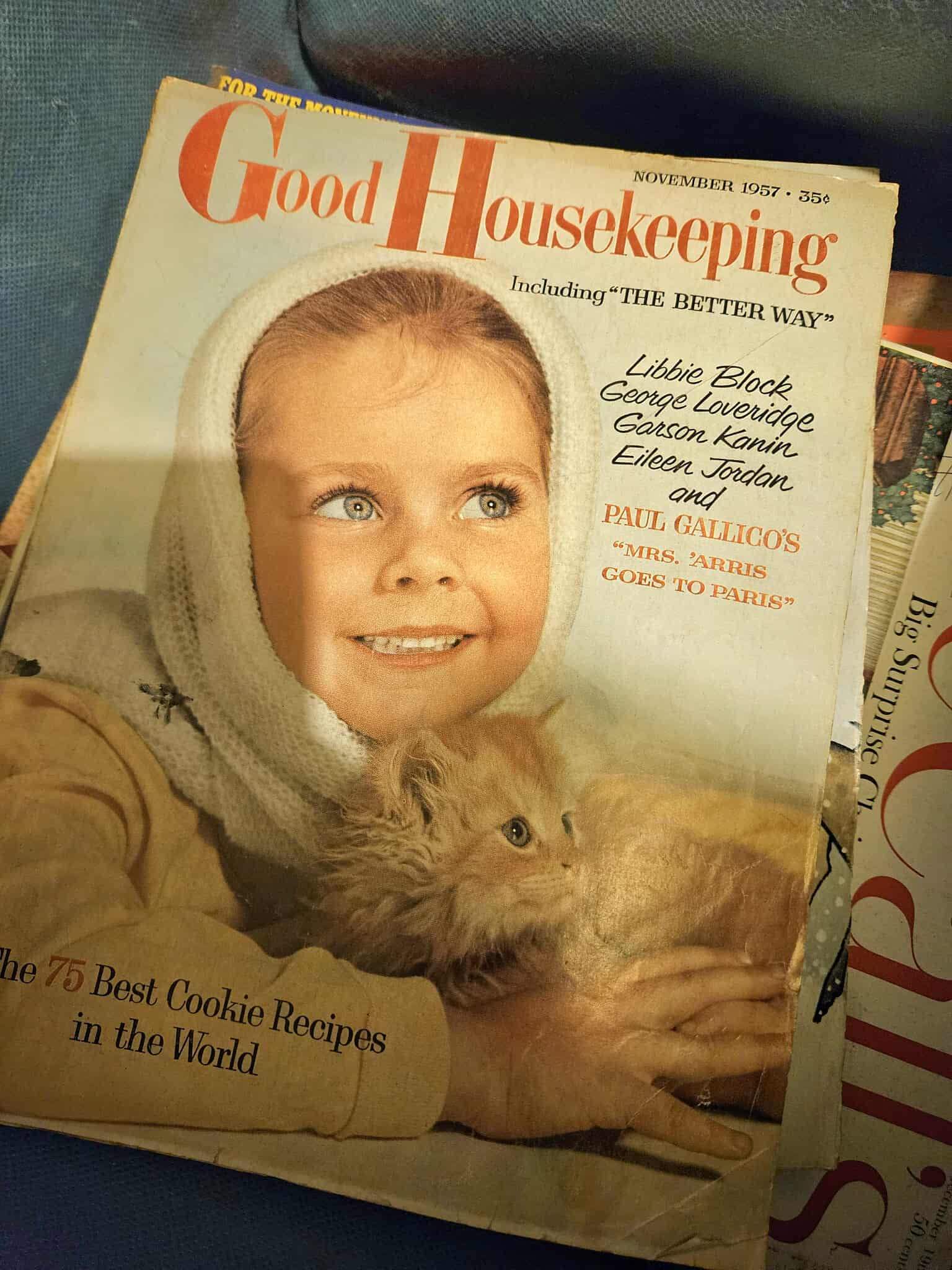 It was drilled into us, both as women and in society in the 1950’s and beyond, to have “Good Housekeeping”, like the magazine cover states, which I found many copies of, that we will save, cleaning up my old family farmhouse. These vintage 75yr old gems are just paper, sure, saved stacked and stashed away, but the sentimental thing about them is the LOVE of mom’s, grandma’s, great grandma’s that wanted to keep good housekeeping for their families.