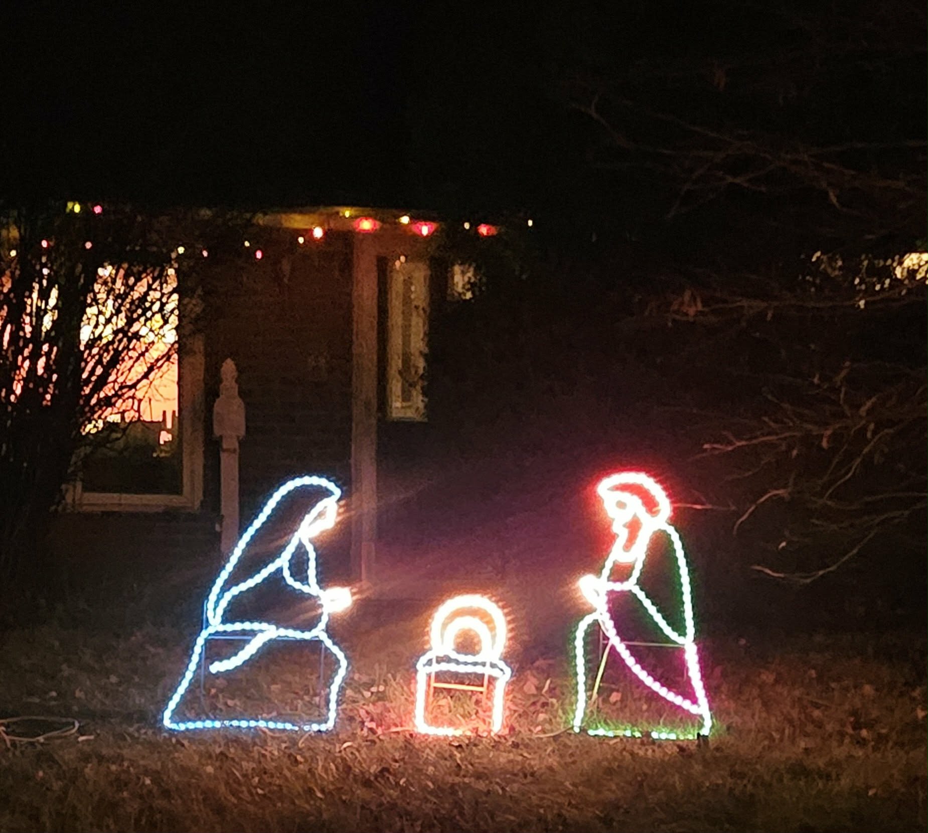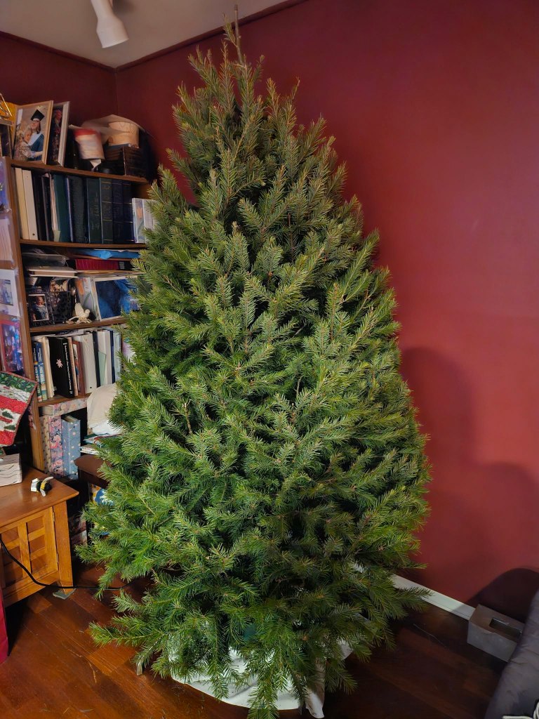 Crucially I got the Christmas lights up – which i didn’t get up last year – and my youngest was sad I learned later – it was just so busy with other things last year – but this year I took the time at 40 degrees before it gets colder – and most importantly to me is that I get my neon lighted nativity scene placed outside – now that IS a holy light… Later on Sunday night – which was a full day already – we got our tree and the kids know this is important to me to go together – and honestly who can beat a 3 minute drive to the scouts who fresh cut and even tie the tree to your roof and then we are home and tree up in less than half an hour! I let the kids pick the tree and now my youngest is strong enough to lift it himself off the car – I love that they love this now… took a few years of “really?” to be “ok” to be “yes, mom”… volunTOLD…