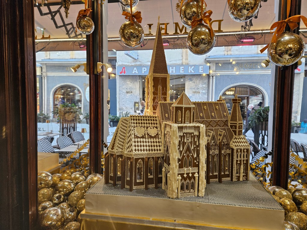 A great day the traveling way! Went up to the top of St Stephen’s Cathedral tower, then connecting train rides (about 2 hours) to middle Austria which has the sweetest touch of snow decorations… so blessed… lots of great food lots of chocolate lots of Austrian desserts and lots of friends old and new!
