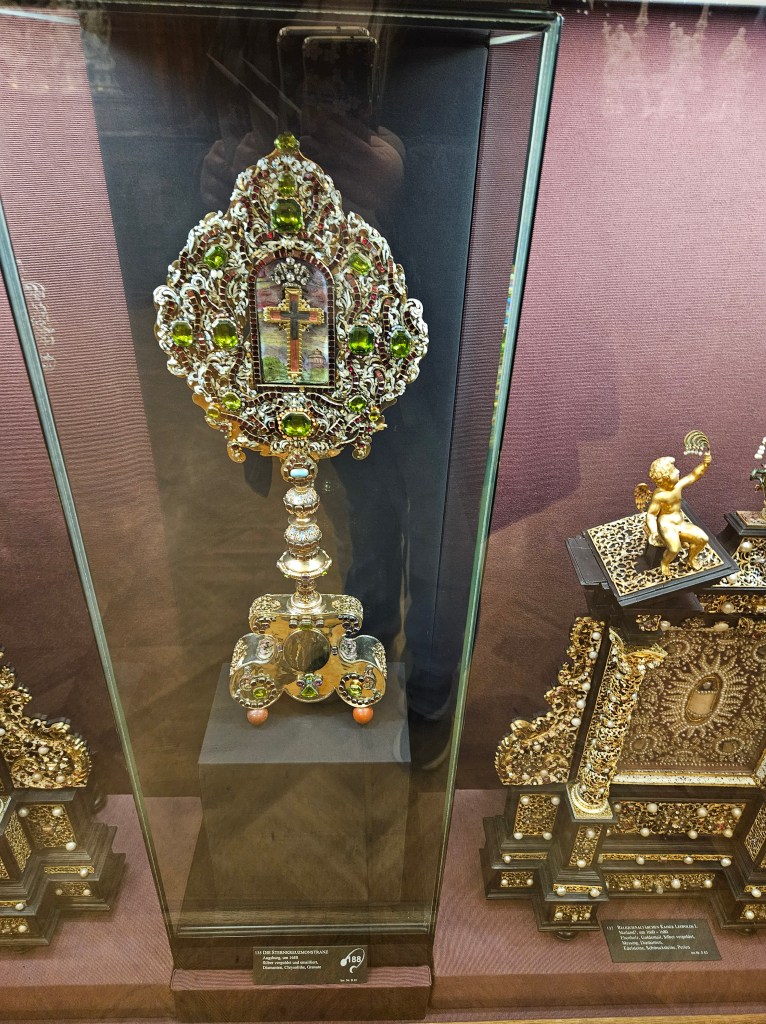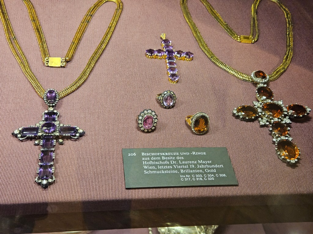 Treasures Treasures Treasures of the Imperial Jewels museum in Vienna, CROWNS and CROSSES. Biggest gems so unbelievably beautiful… and an amber altar, and Charlemagne’s Gospels copy guided GOLD from 800s… wow!!! And much from the Holy Roman Empire into the Hungarian Austrian Empire… WOW!!!