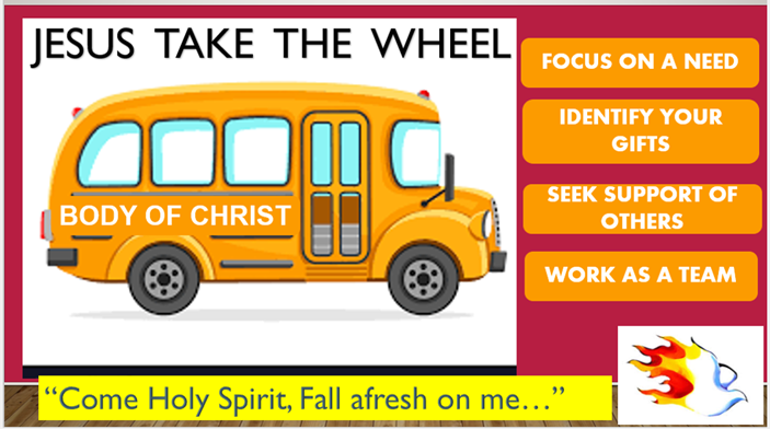 (point to the slide) – as the Body of Christ – we can focus on a need that we see – we should be identifying our gifts –