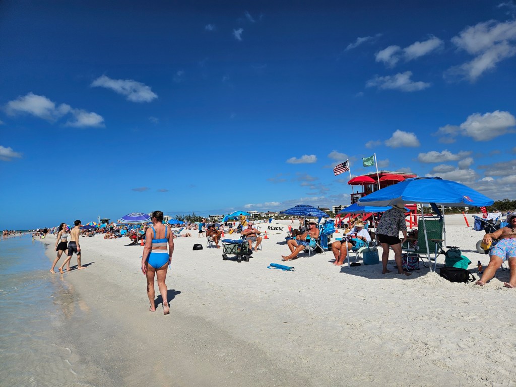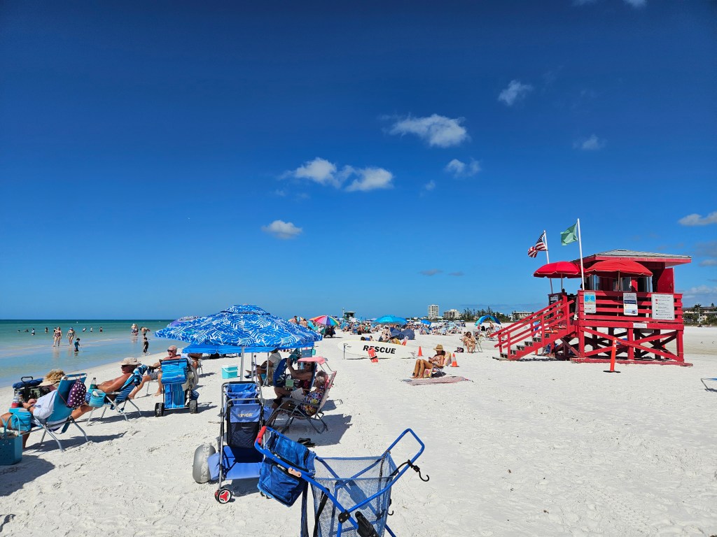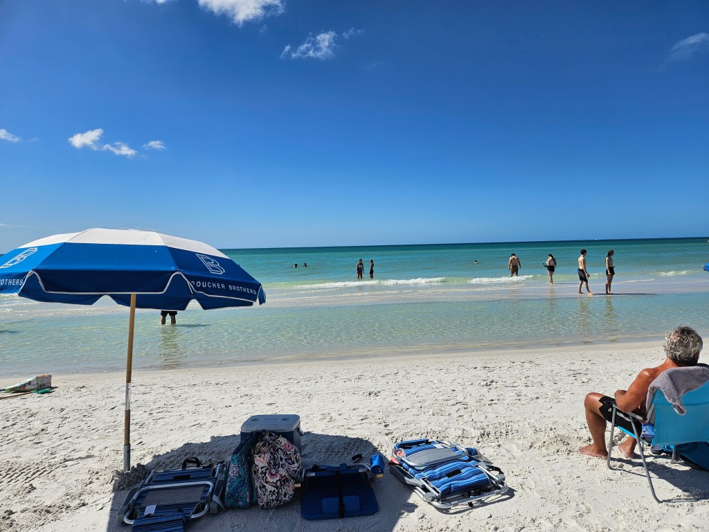 It was a BEAUTIFUL Florida vacation beach day, both facing “the Gulf” at Siesta Key and inside the “intercoastal” at Casey Key, with an “old Florida” feel of open air restaurant and tiki bar buzzing with activity in this “snowbird” season. I loved the atmosphere and the people, it’s like vacation time for everyone and you expected a Jimmy Buffet loving character to be chatting it up everyday everywhere… (I even navigated a sticky conversation about the naming of the gulf, but I wasn’t here for an argument, and the Lord gave me an apt witty reply. Thank you Lord for restoring the peace.)