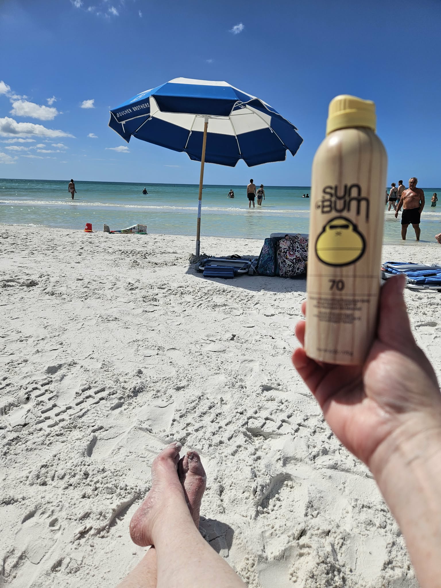 In the water, looking at the horizon and the sun and the blue sky, I said to myself and in Praise to the Lord: “Jesus, You Calmed my Sea, here in Sarasota Key.”