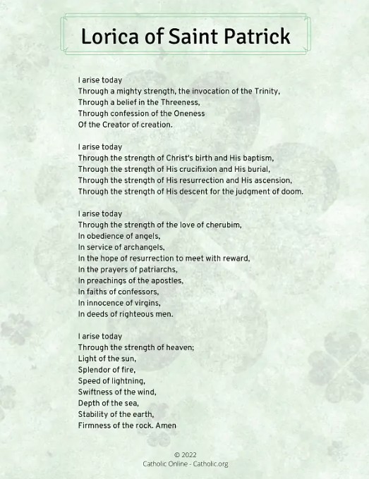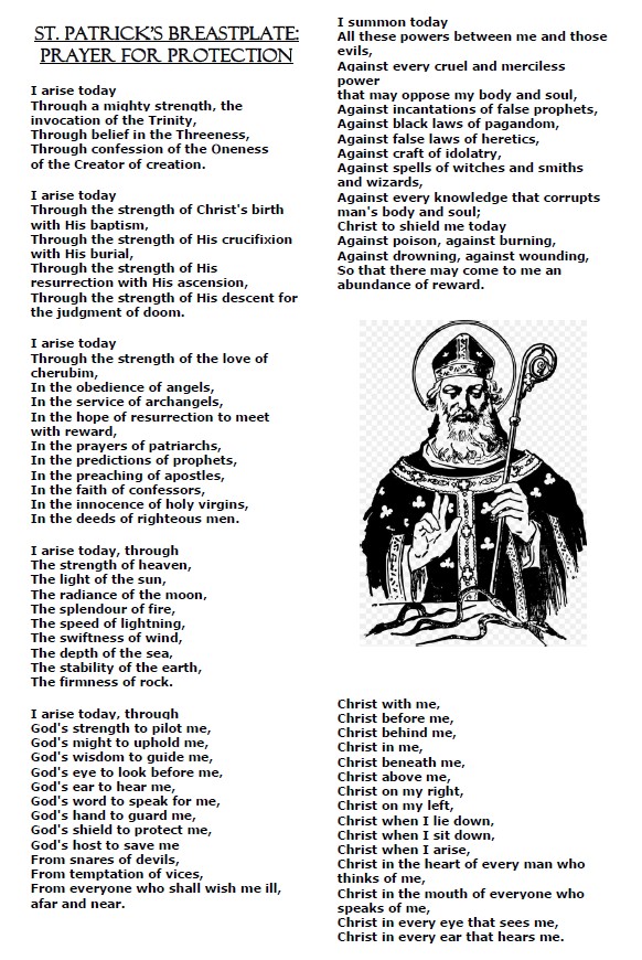 St Patrick’s many prayers include reference to a “breastplate” prayer – which I would imagine is good to have as you ride into battle – which we do in our own certain ways every day. And other versions call part of it the “Lorica” – which refers to a sheth or case – which I will add that we should remember to let the Lord encase us in His protection.