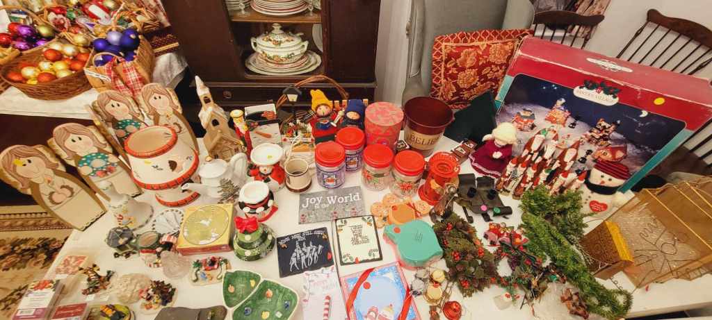 My marathon marvel moments were MANY last night, the first time I stepped into the sale set up… First this is a reminder for the many church rummage sales of the 70s, that my mom used to volunteer with. Stacks and stacks, and people chomping at the bit to come in. Other marathon memories include taking my kids to this mansion to absorb history and remember that we are to remember. But what got me last night walking in to help price, was that the SAME CHRISTMAS donations that I personally brought were there for me to SELL, AGAIN, haha, Lord that is funny. After selling for my friend who is moving, these are now the SAME in the room that I am staffing for selling today… weird and not… It’s like I’m in a loop of my life for a reason. And yet I think the lesson here is just keep living life… This is an opportunity to share and to shine – and have fun for a good cause – and really – I hope we DO sell it and not have to pack it up and sell it again…