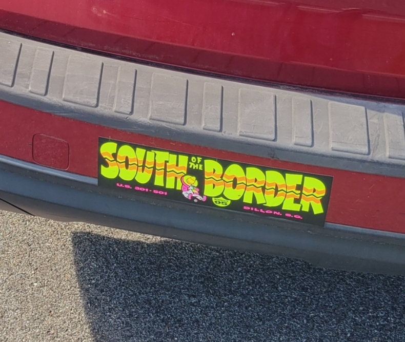 We are to enjoy our stuff while here on earth as we live. Just don’t get hung up on amassing treasures in earth over those in heaven. A treasure to one is trash to another, and vice versa. There are treasures in little things, like memories, like the smile from 80’s south of the border bumper stickers, still usable, so I stuck one on my “beater car” over a scratch.