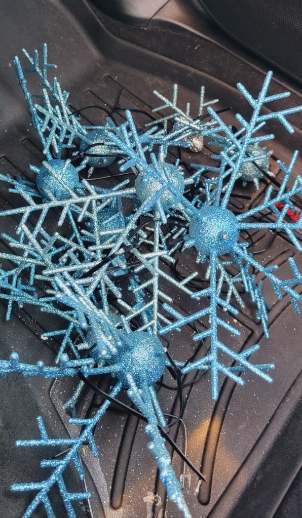 I bummed myself out last weekend oh how STUPID I felt when I went through the automatic car wash with my winter decorations (plastic blue snowflakes) still zip-tied to my roof and they all half broke. Bummer… bleh… STUPID… I’ll get past it… snow melts, right?! yes it does…
