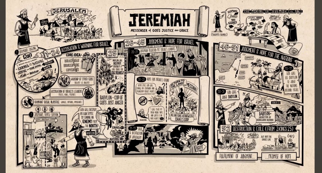Jeremiah is the writer of HOPE and judgment, and of course of timetables for Israelites in exile to Babylon AND for their return. Jeremiah is the poster child of prophets. He has got a lot going on (and I didn’t even get to his section of his Egypt imprisonment yet).